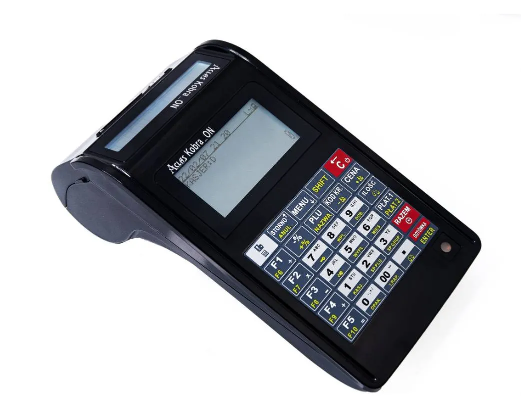 Kasa ACLAS Kobra_ON współpracuje z terminalami płatniczymi (po WIFI lub RS232), wagami, czytnikami i szufladami kasowymi.